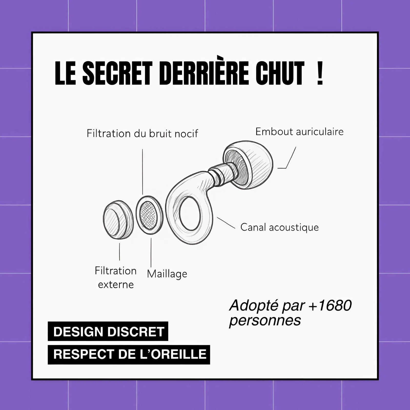 Écoute le son tel quel… ça fait mal aux oreilles, non ? Maintenant, découvre le confort avec Chut !